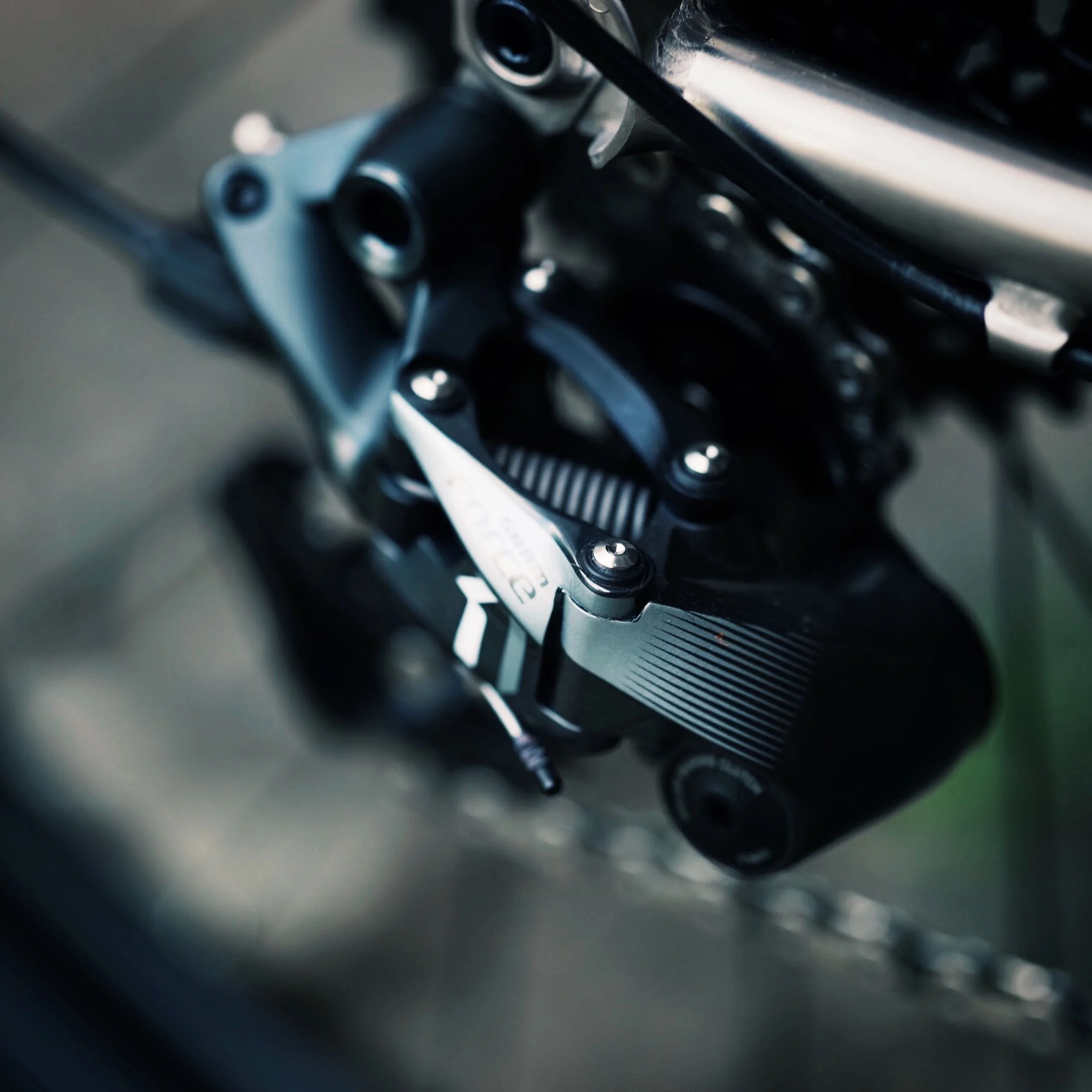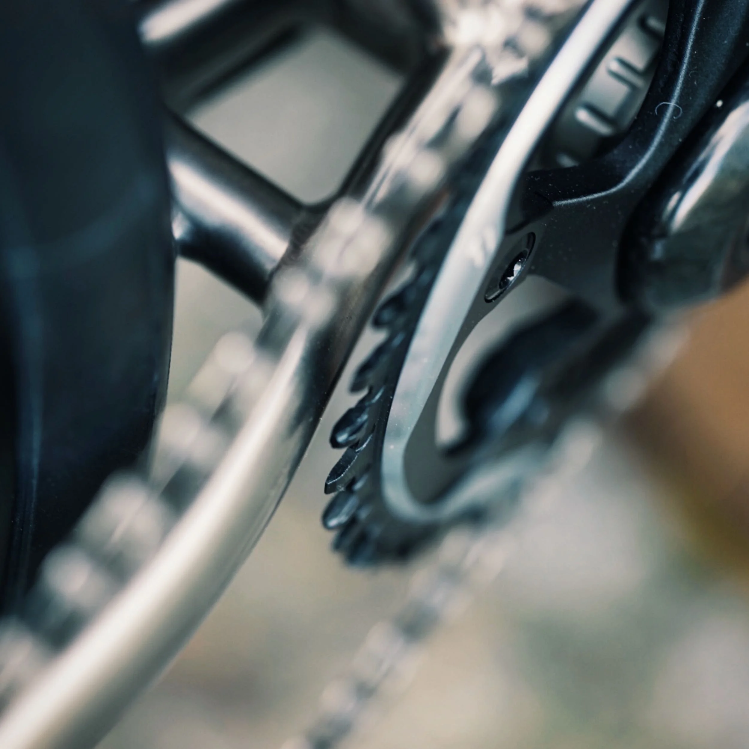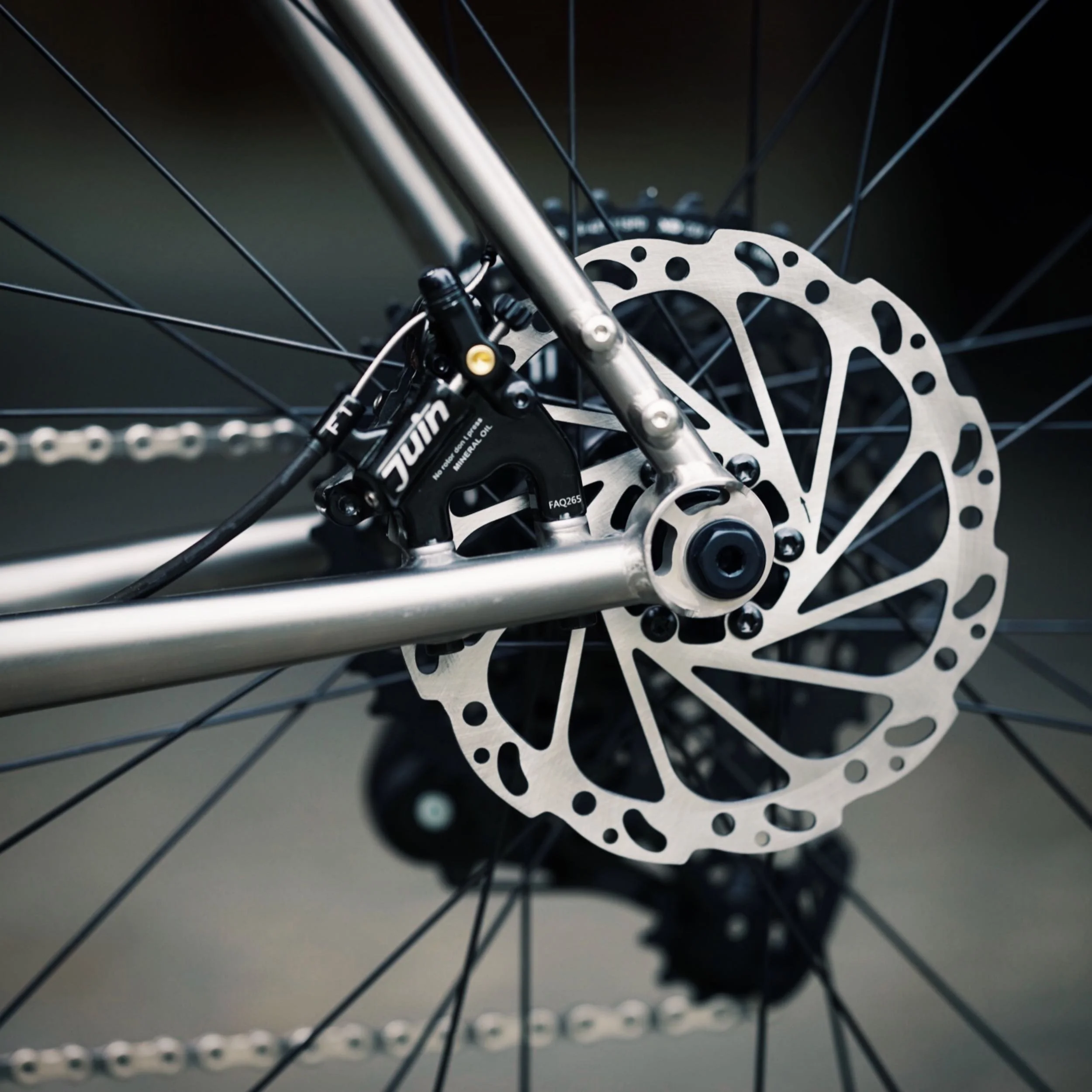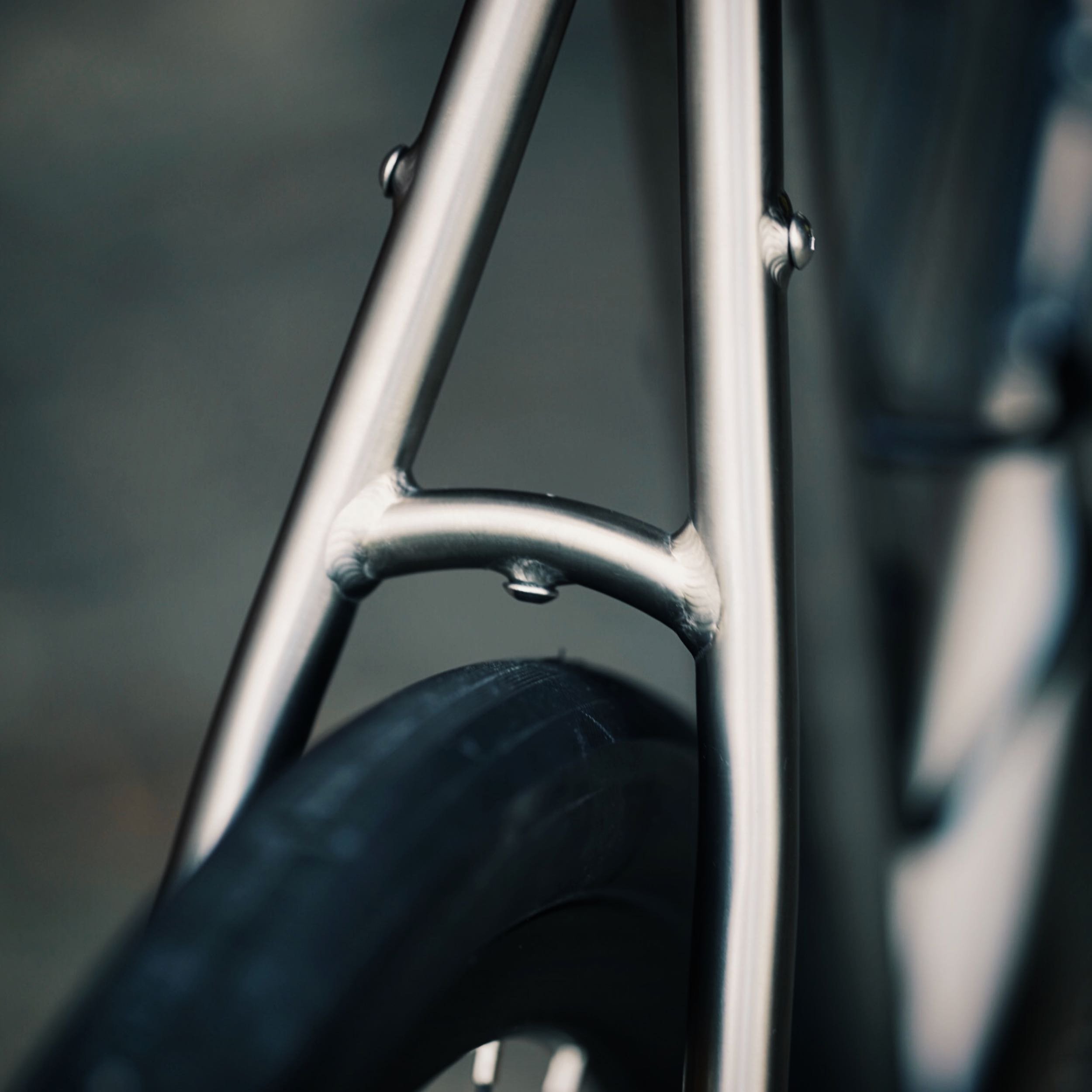 Titanium Grade 9 butted Tubes . Schaltung: 42Z:10-42 Sram Force 1 11-fach. Carbon Gabel mit Ösen, Steckachsen, Innen verlegte Züge, 3 Flaschenhalter, Vorbereitung für Schutzbleche, Beleuchtung und Gepäckträger, Laufräder + Steuersatz: Hope, Vorbau: Thomson, Lenker: Salsa Cowbell 420mm, Leder Lenkerband, Bremsen: Juintech , Reifen: Rene Herse / compass Barlow Pass extra light 700x38mm, Gewicht: 9.4 kg, Komplettbike: 6.300€