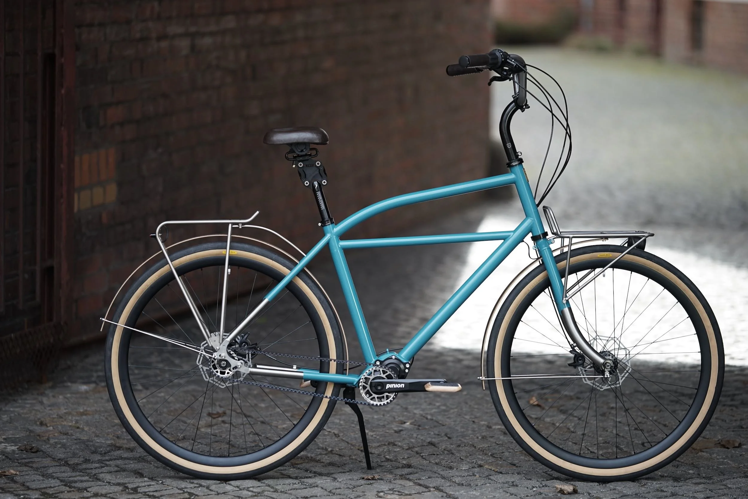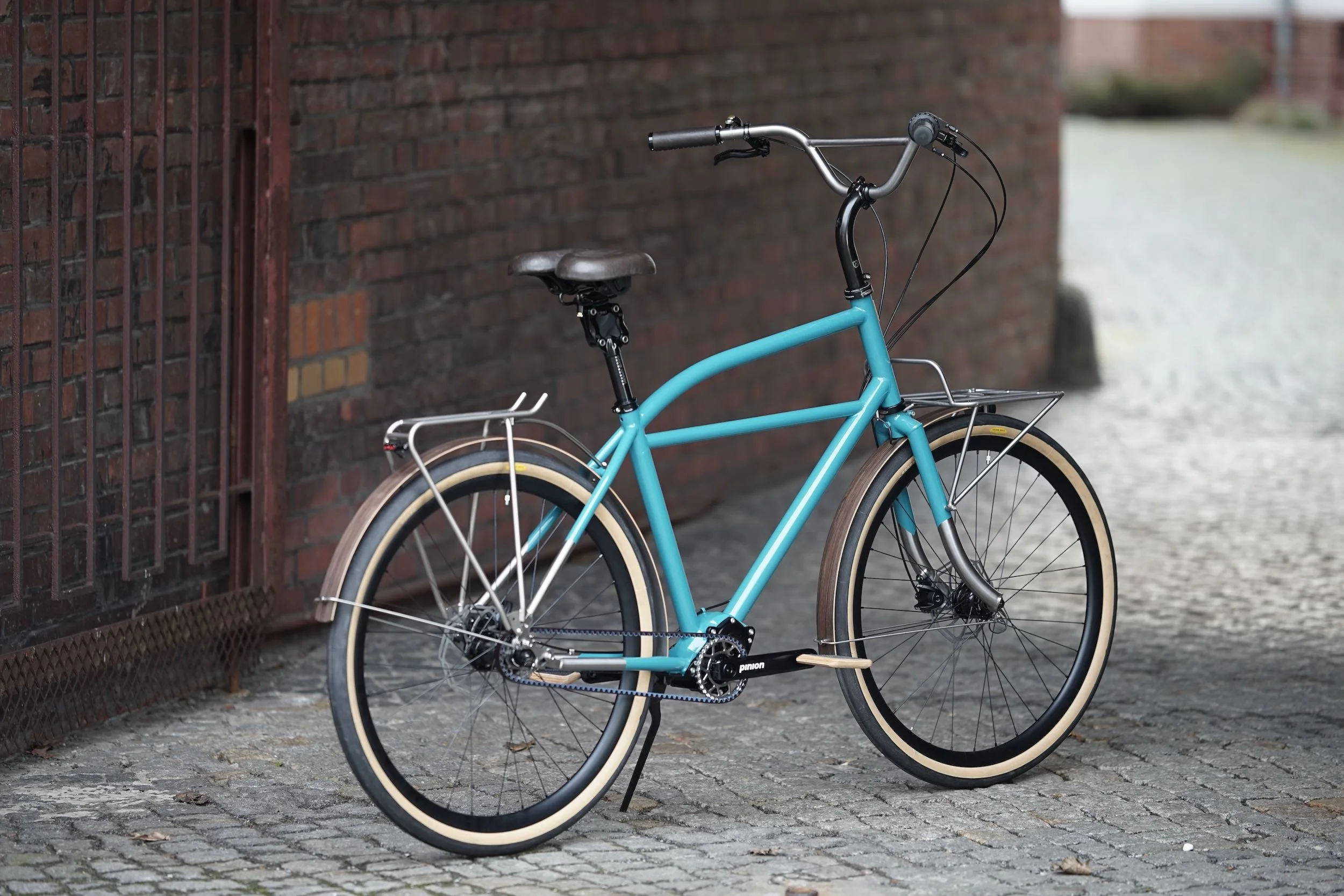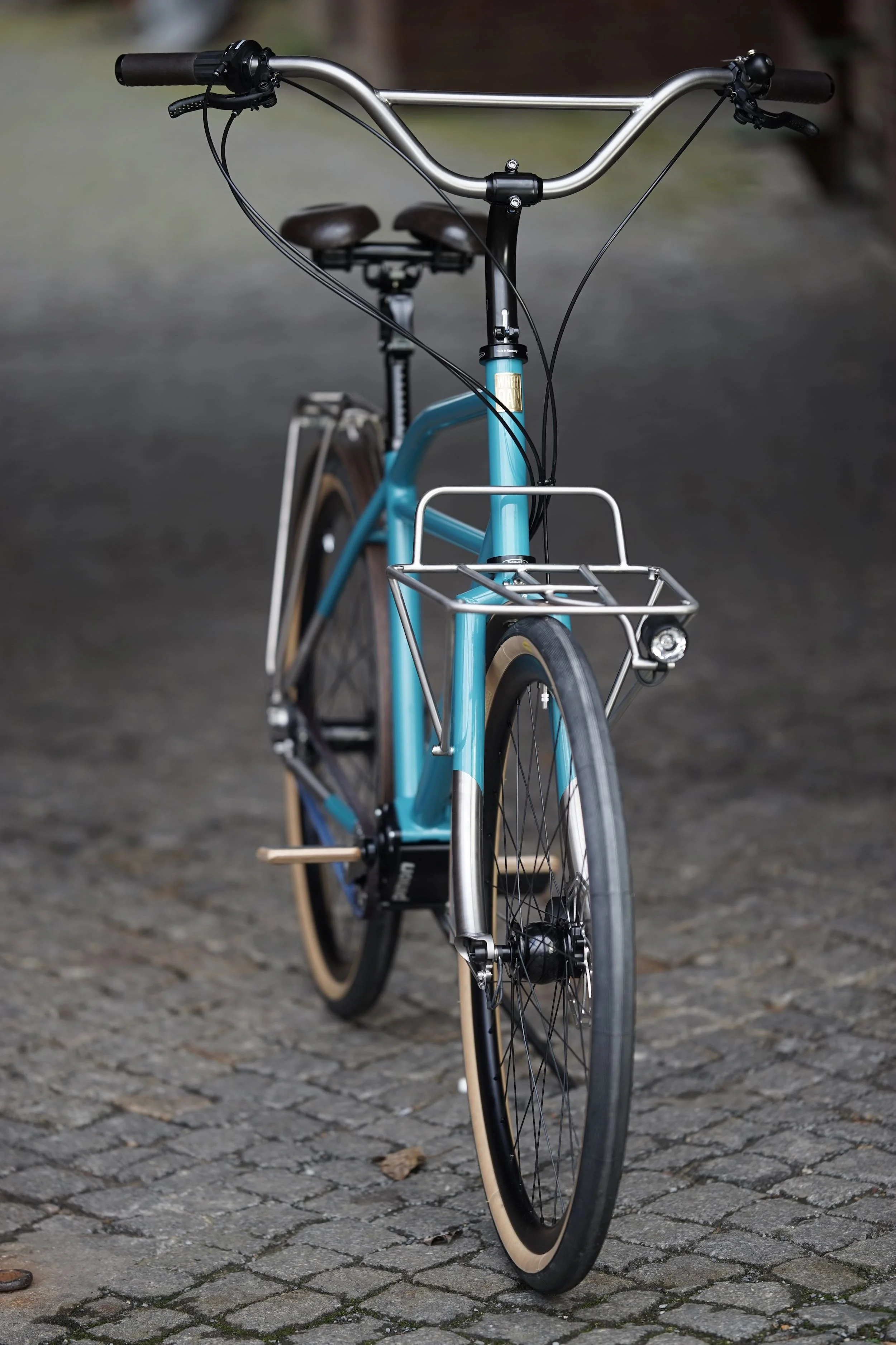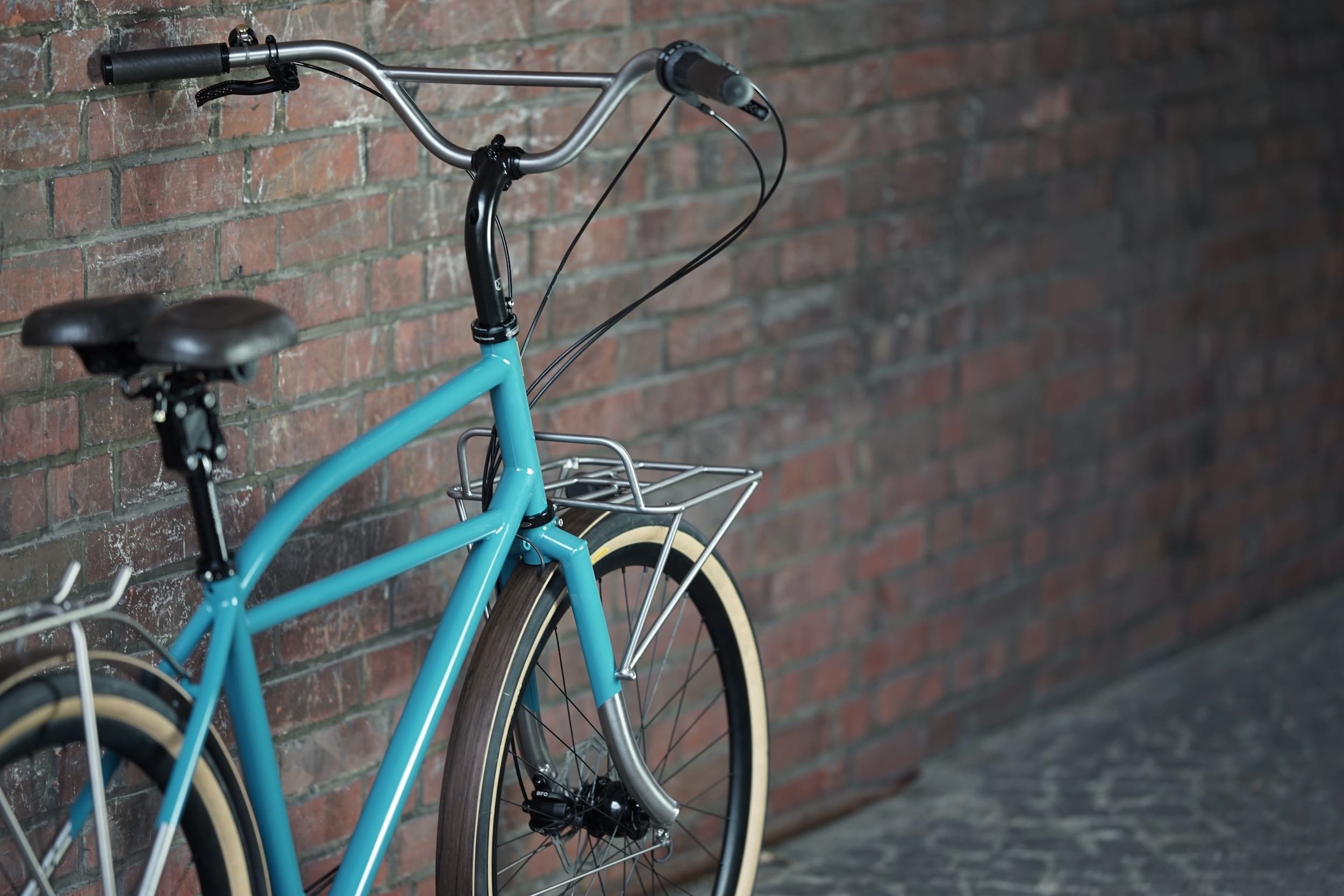 Ein teillackiertes Titanbike zum entspannten Geniessen des Alltags. Aufrechte Sitzposition, Platz für Gepäck, integrierte Zugverlegung und Beleuchtung, Holzschutzbleche.