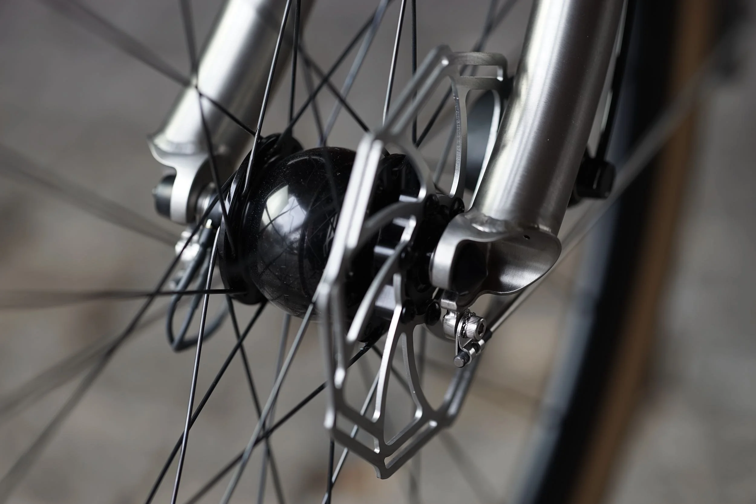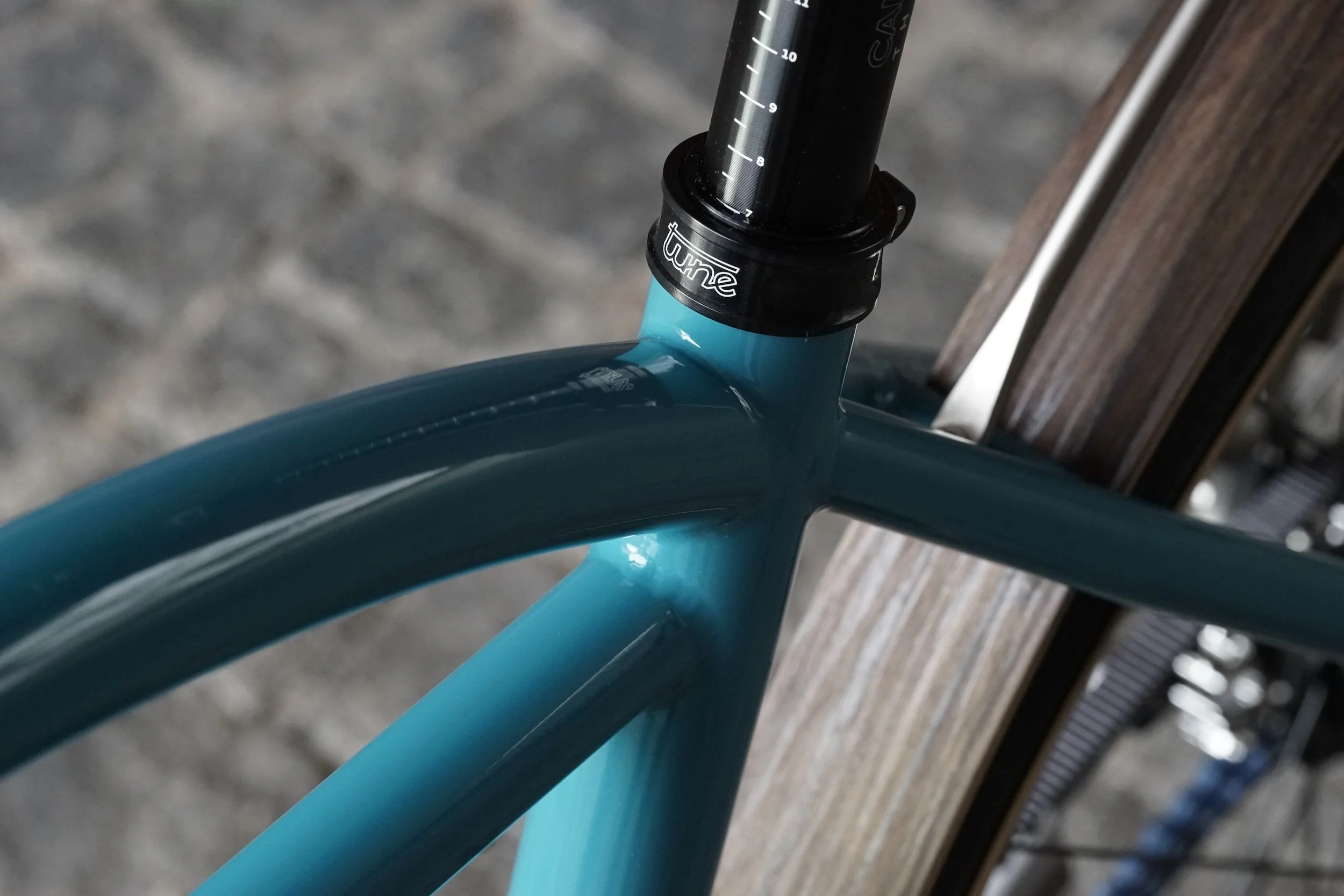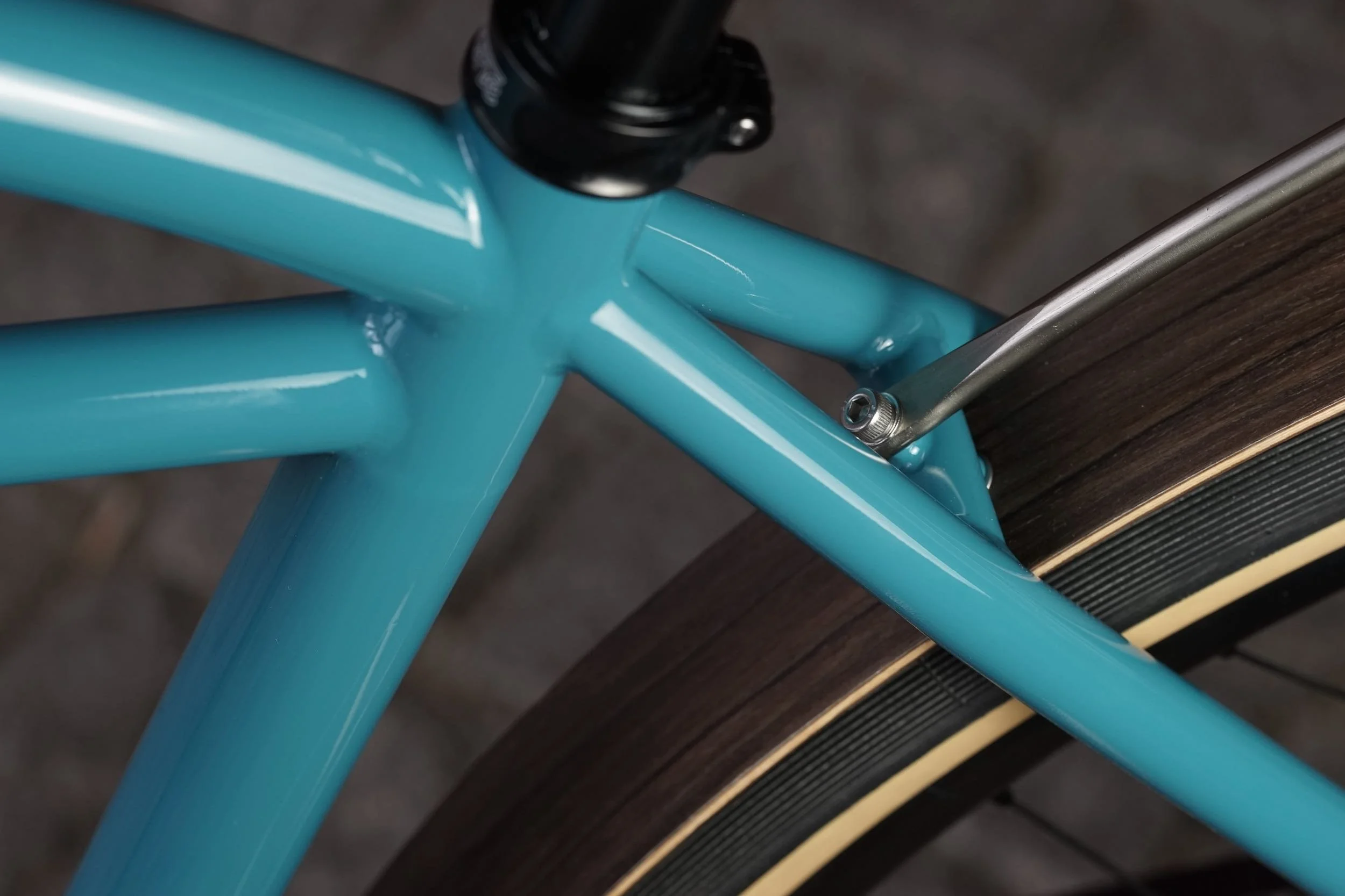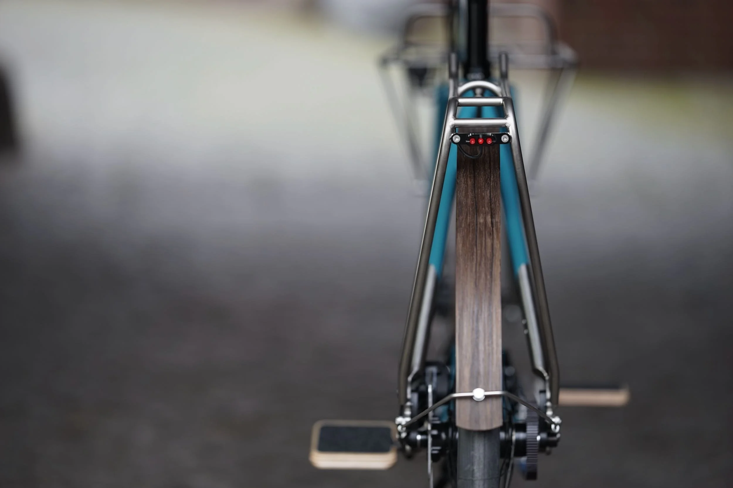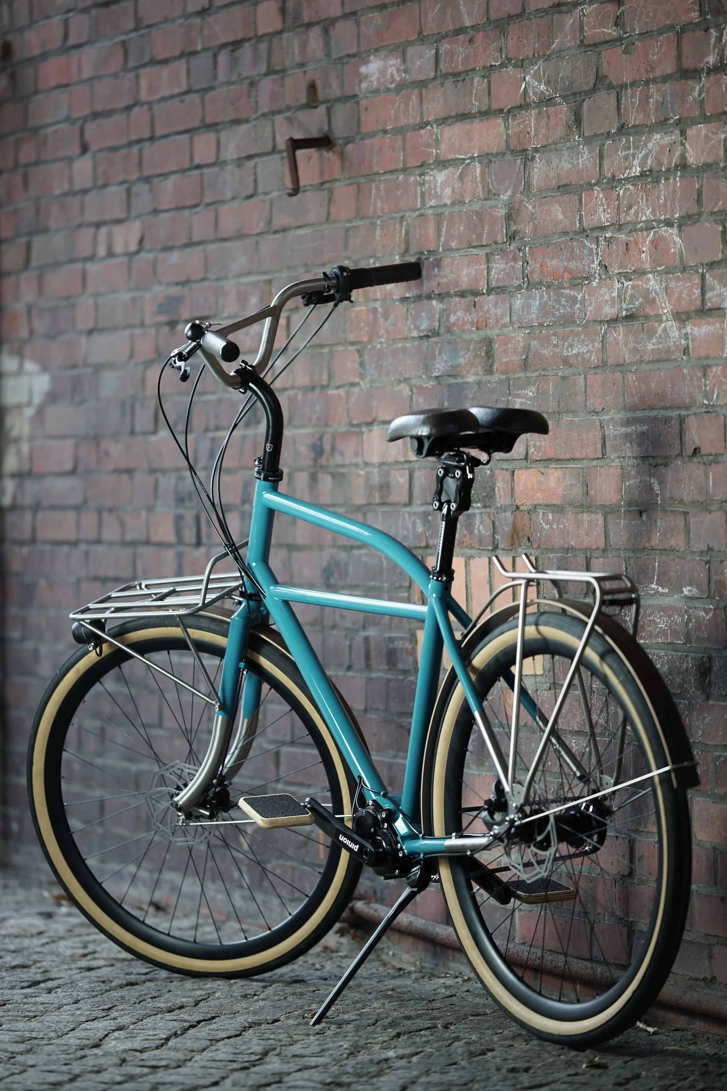 Ein teillackiertes Titanbike zum entspannten Geniessen des Alltags. Aufrechte Sitzposition, Platz für Gepäck, integrierte Zugverlegung und Beleuchtung, Holzschutzbleche.